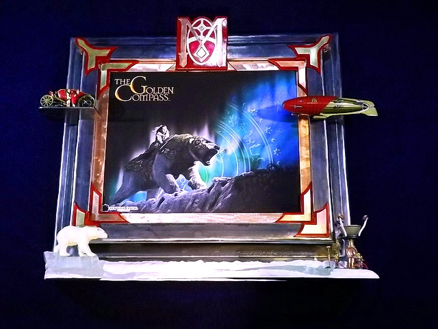 I made this frame for a poster of the movie of Philip Pullman’s “The Golden Compass”. It was a movie I enjoyed enough to make a frame for one of its promotional posters. I liked the book even better. I was very disappointed when I saw the films were not going to be made for the second and third books in the series, “His Dark Materials”.